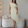Vestido curto com detalhe no busto e abertura lateral.
