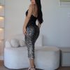 Vestido Valente Paetês Midi Preto